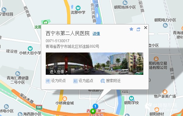 西宁汽车客运中心站840米向西北步行 到 火车站11站乘 107路 (一机床方向) 到 小桥医院100米向东步行 到 西宁市第二人民医院