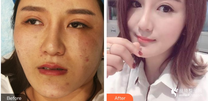 痘痘祛的好快,现在脸上已经没有痘痘了,痘印颜色很淡很淡,皮肤变细腻了摸着很光滑,第一次疗程有这么好的果已经很满意了。还有医院的无菌修复面膜真的太好用了,针眼已经结痂恢复好了,在针眼没有闭合不能洗脸的时候就可以敷医院的修复面膜哦。